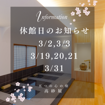 【2026年 3月の休館日のお知らせ】